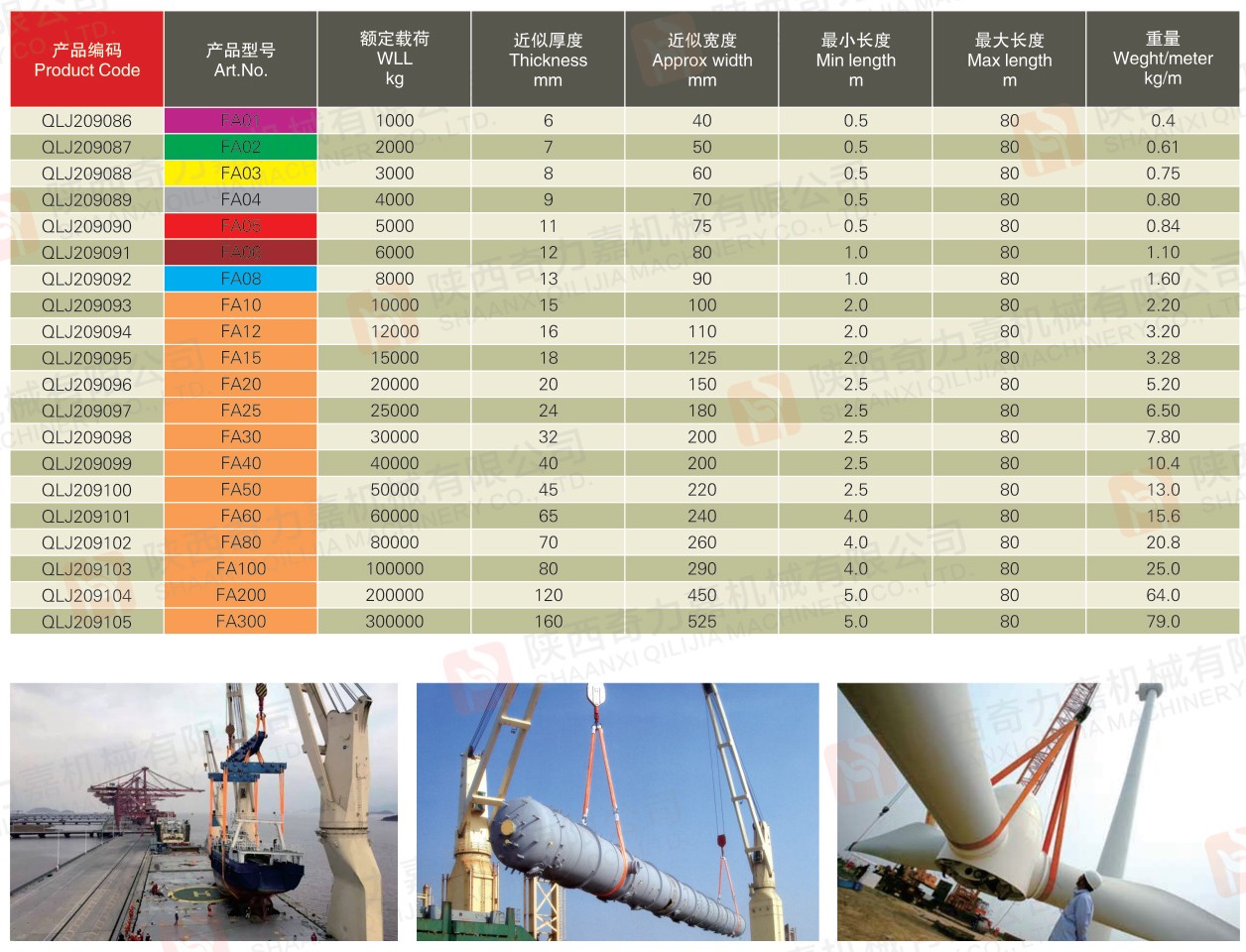 ●吊裝帶在吊裝使用過程中有減震、不腐蝕、不導電,且在易燃易爆環境下無火星等特點。