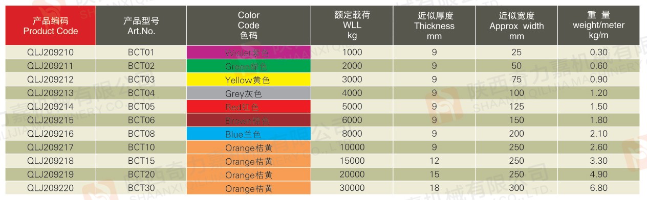 ●吊裝帶在吊裝使用過程中有減震、不腐蝕、不導電,且在易燃易爆環境下無火星等特點。